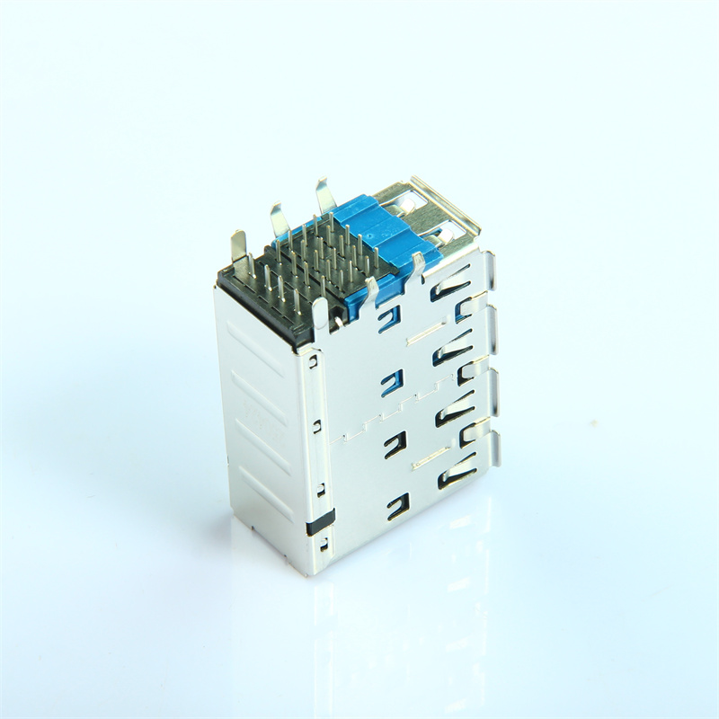- 双层合体设计:单颗 PCB 同时兼容 USB3.0 高速传输与 USB2.0 常规连接,节省 PCB 布局空间,提升接口密度,适配多接口拓展需求。