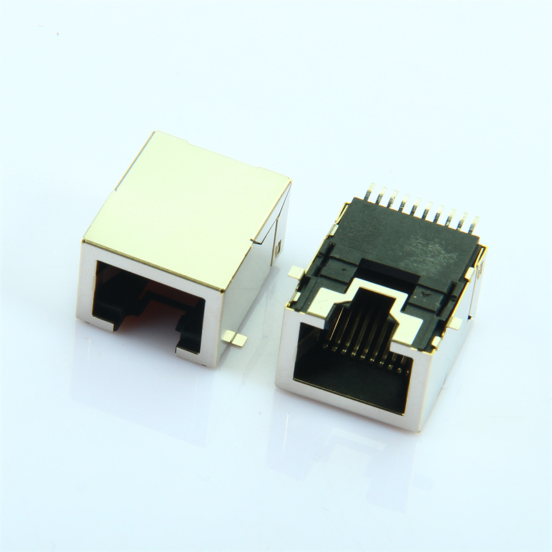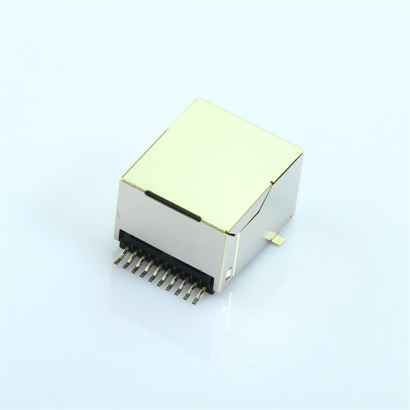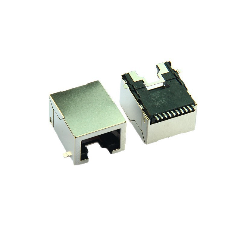 RJ45 母座连接器 - 卧式插件10P8C无灯超薄屏蔽网口接口