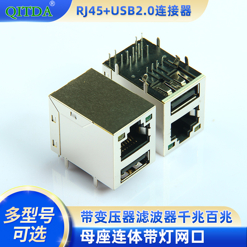 产品名称:RJ45 + USB2.0 连体带灯网口连接器品牌:QITDA(祺泰达)型号系列:多型号可选(支持定制)应用场景:工业控制设备、网络通信设备、路由器、交换机、嵌入式主板、安防监控设备等