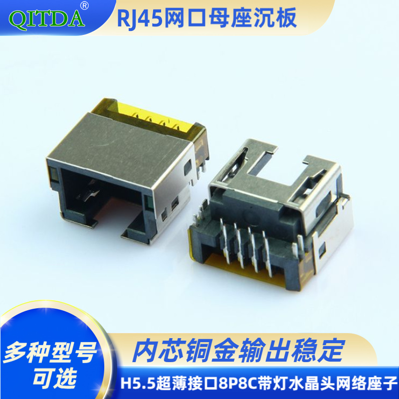 • RJ45沉板居中 H5.5超薄连接器接口8P8C带灯水晶头网络座子母头