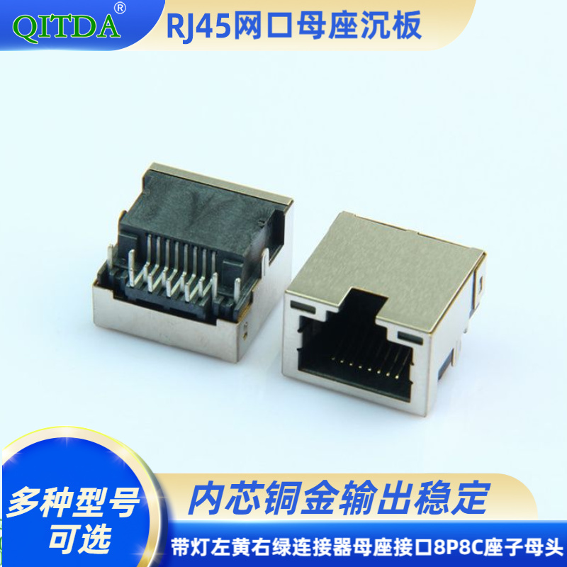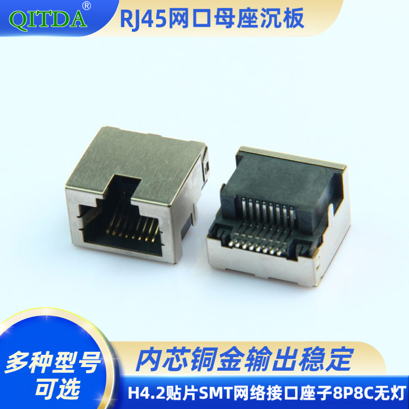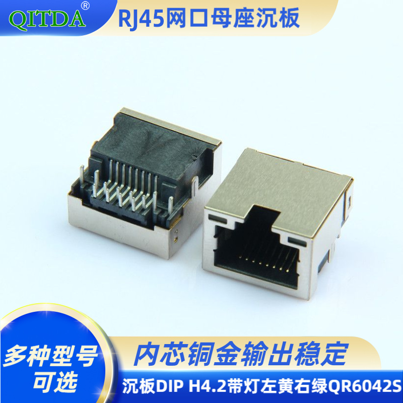• RJ45母头网口沉板DIPH4.2带灯连接器接口8P8C带灯以太网络座子