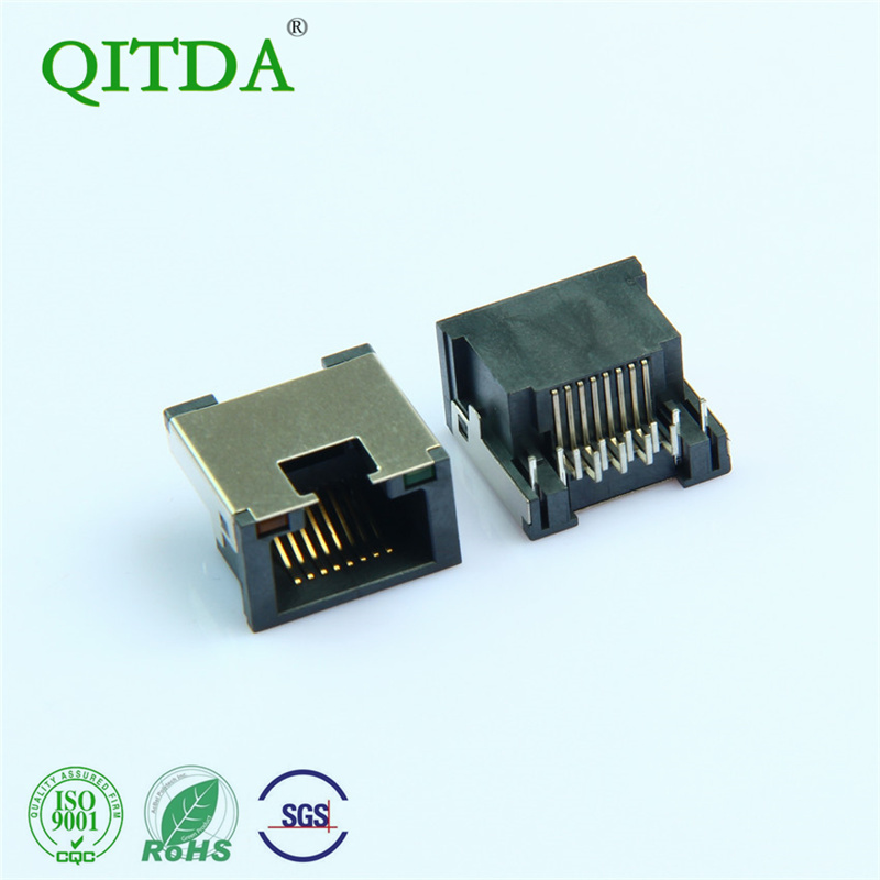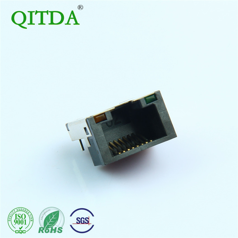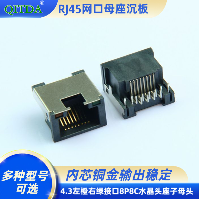 • RJ45母座沉板式居中连接器超薄带灯H4.3网口8P8C网络座子母头