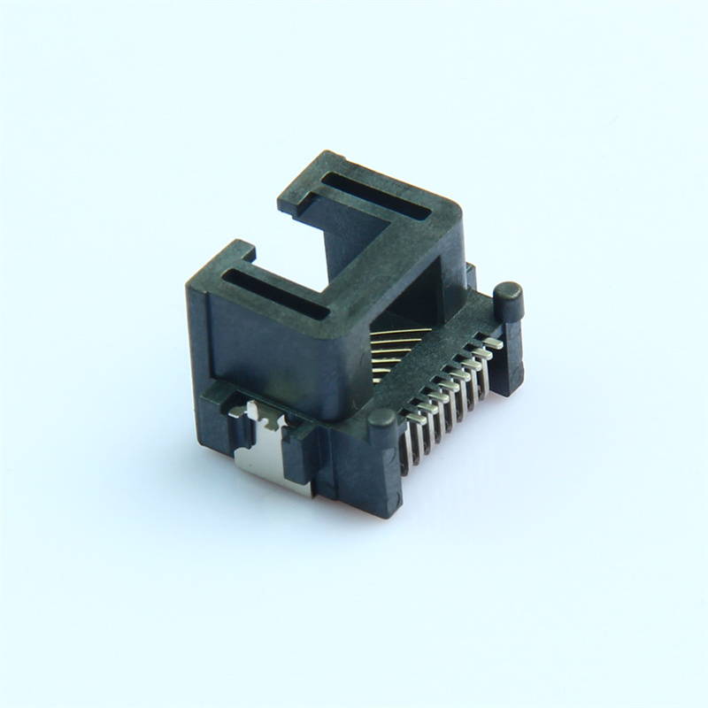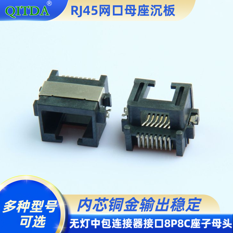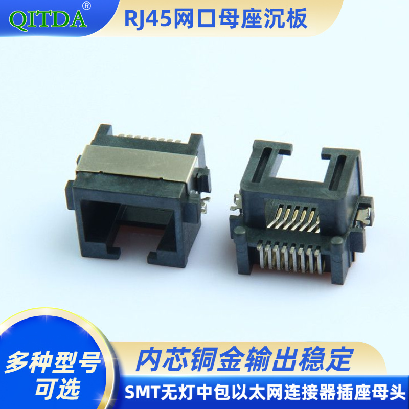 • RJ45网口沉板式母座H8.6 SMT无灯中包连接器接口8P8C座子母头
