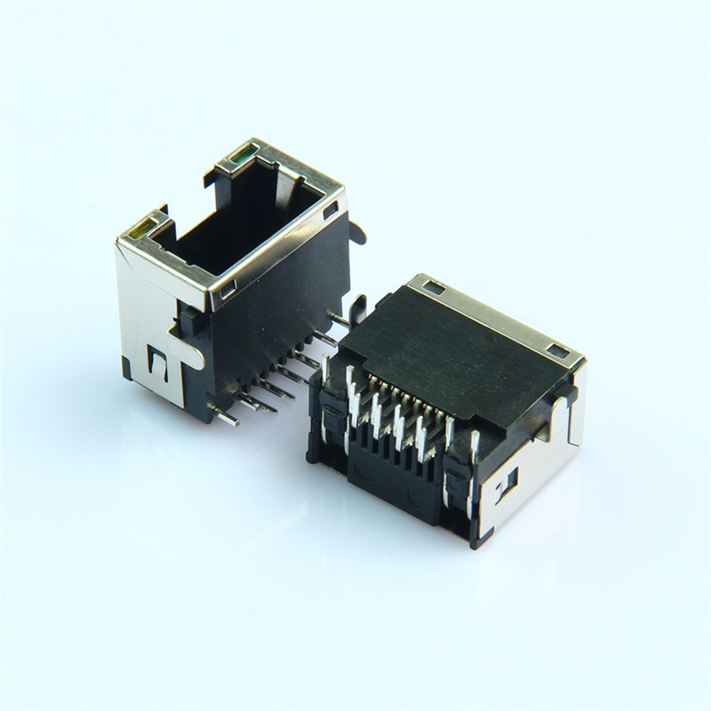 • RJ45网口母座沉板式连接器接口超薄H9.85带灯8P8C网络座子母头