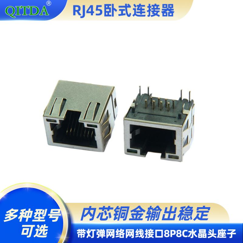 Ultra-thin RJ45 network connector with built-in light, spring-loaded 8P8C crystal plug socket