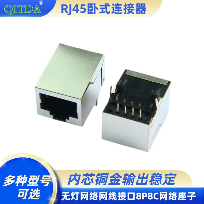 Horizontal RJ45 network connector without indicator light, 8P8C crystal plug socket