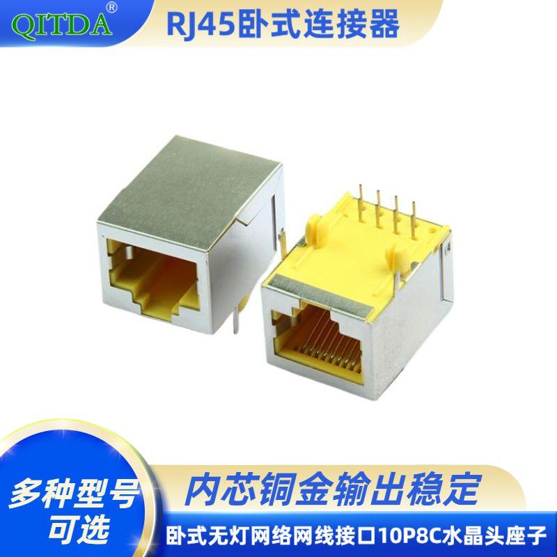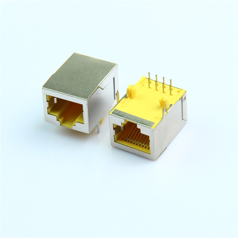 RJ45 horizontal connector, 8P8C shielded network cable interface without indicator lights, yellow